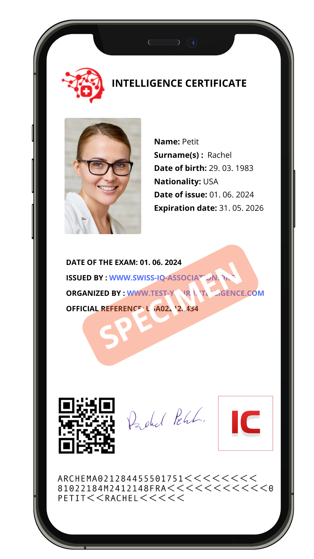 Get your Official Intelligence Certificate certified by Swiss IQ Association