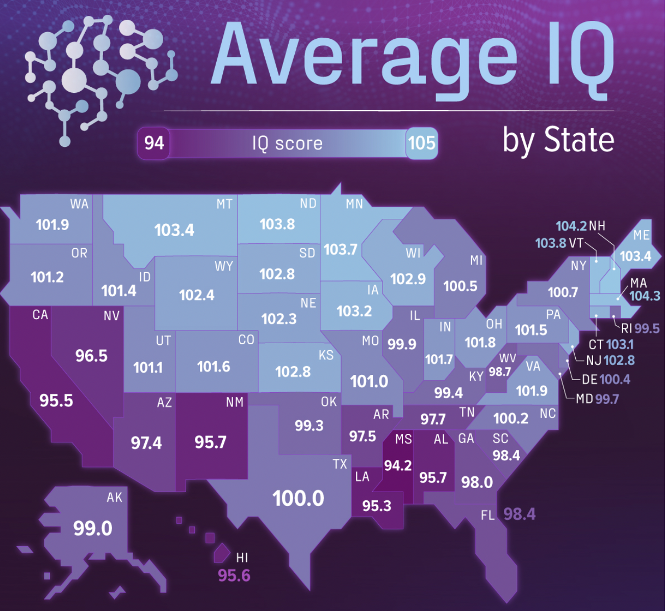 As of recent studies, the average IQ score in the United States is approximately 97.43. However, this average can vary by state. For instance, Massachusetts boasts one of the highest average IQ scores at 104.3, a figure often attributed to the state's emphasis on education and presence of numerous academic institutions.
